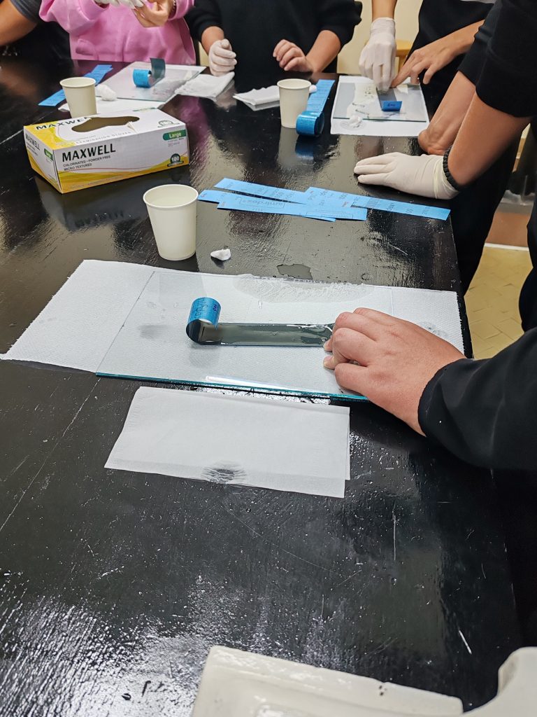 Tokom demonstracije, učenici su se upoznali sa osnovama postupka pripreme uzoraka – brušenje, poliranje, nagrizanje, a zatim su na optičkom mikroskopu posmatrali dobijene mikrostrukture legura.